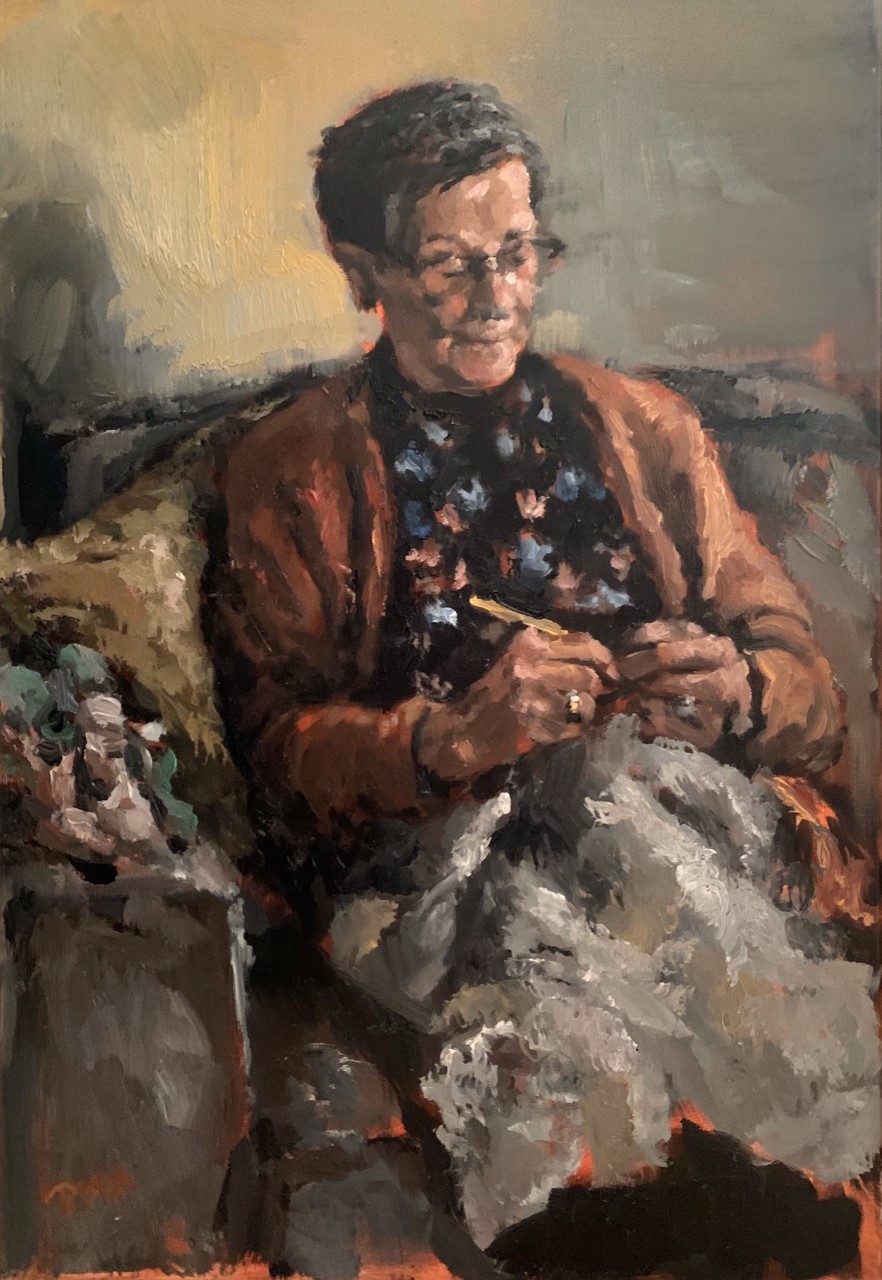 Beppe/hakende vrouw 70x50 cm Olieverf